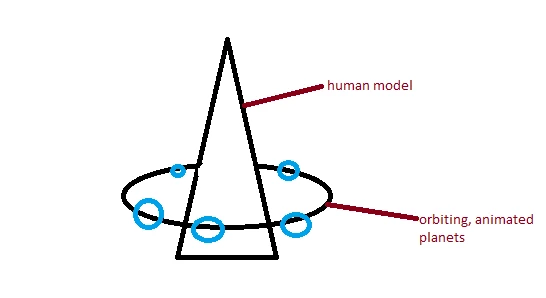 position the planets around the human in 3D space where you want them to begin moving and then parent all the planets to the Null layer.