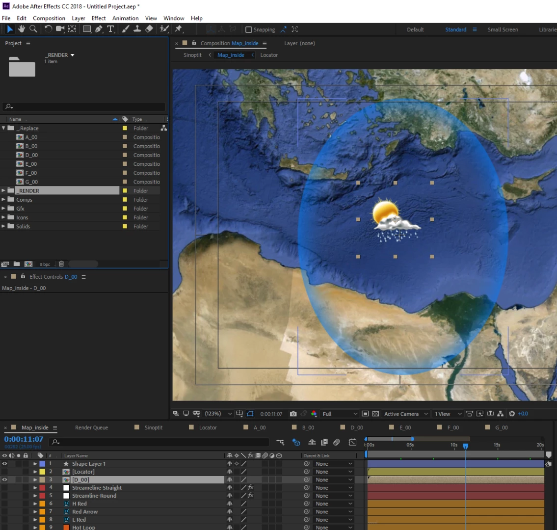 Currently, I use an AI file to update the graphic element, and each weather icon is saved as a symbol (eg sun, cloud, rain, storm etc) but it is a static element in AE, and relies on AE's own effects to animate (fade in and then fade out)...