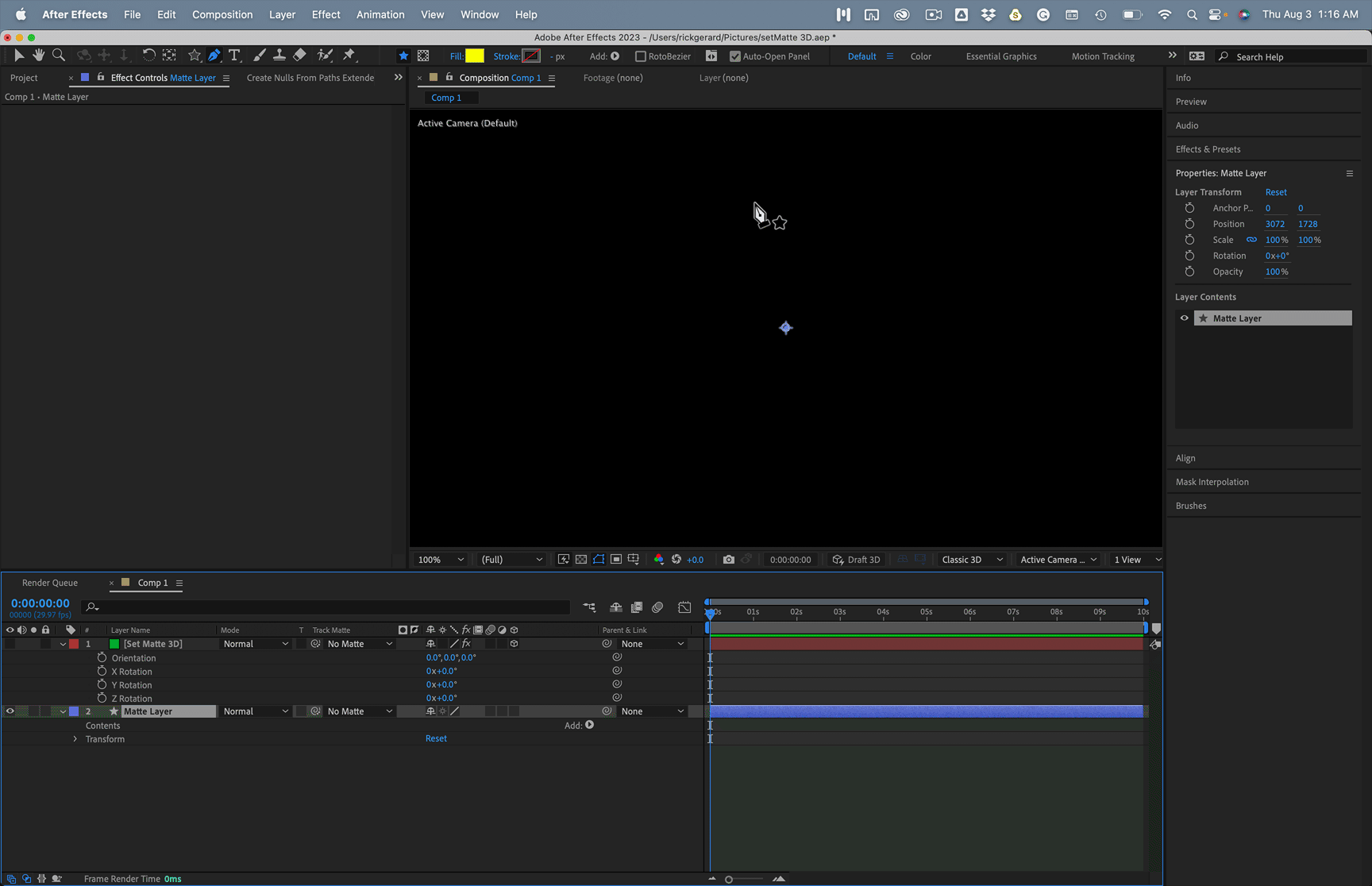 apply 3D rotation on alpha matte masked layer