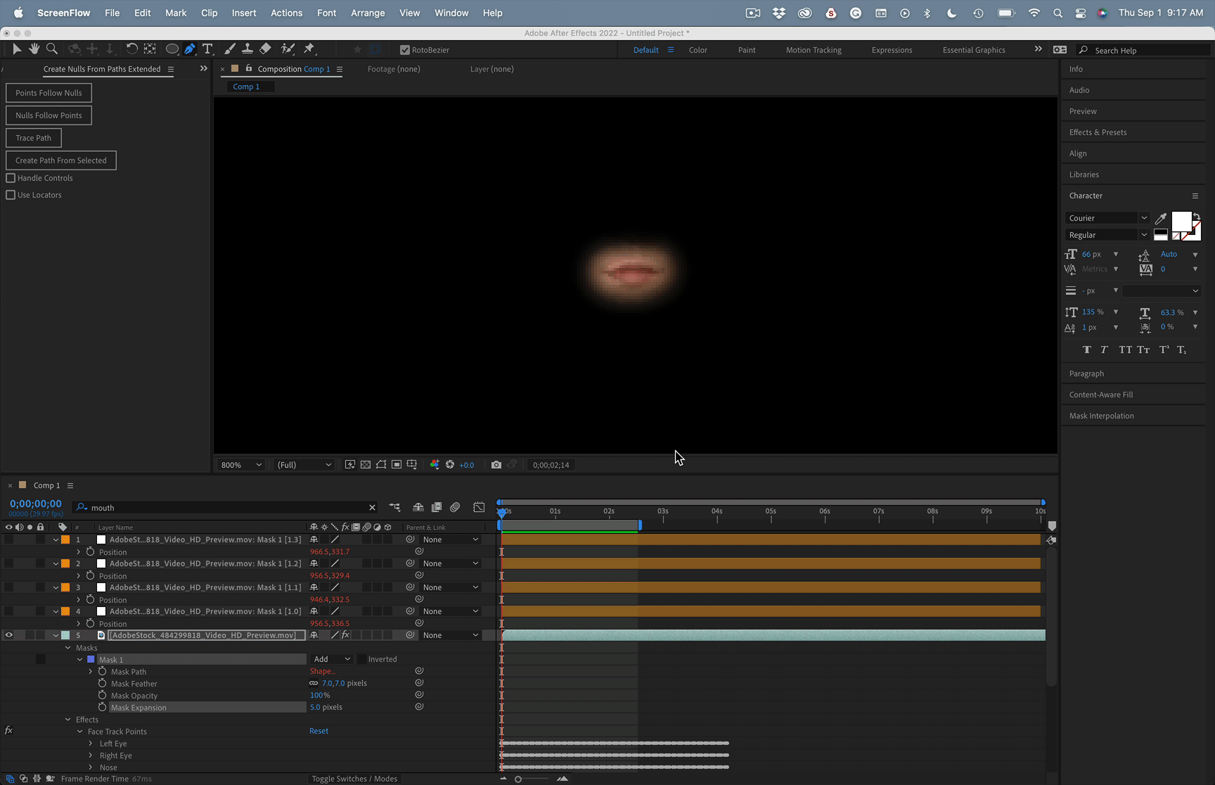 Maybe a dumb question: Is it possible to apply the detailed tracking data from the face tracker to a mask? I would like to extract only the mouth from a footage. So I used the face tracker and the mouth was tracked. How can I use this data to hide all the rest of the face except the mouth?
