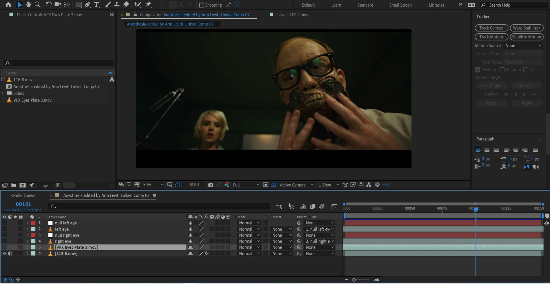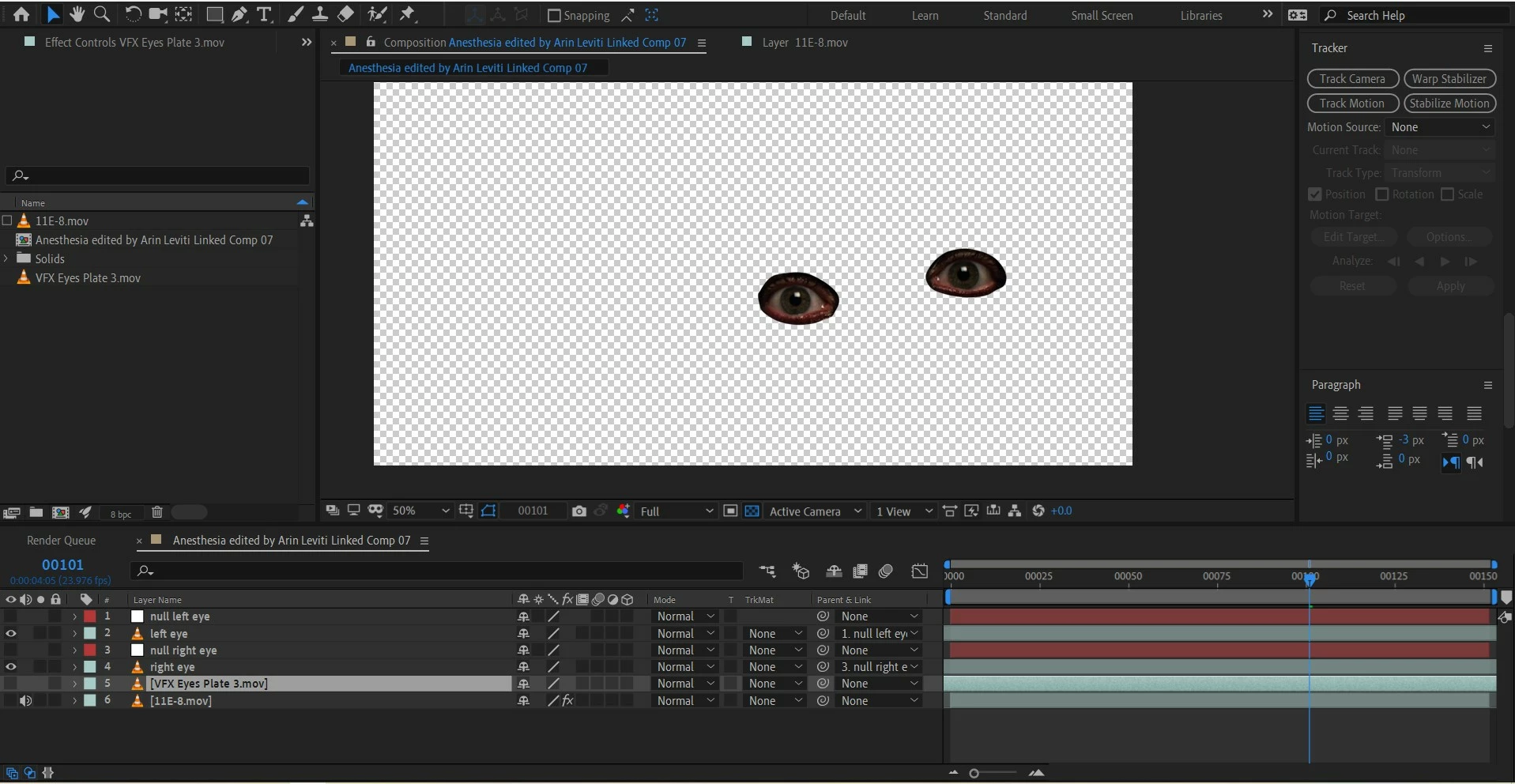 After singleing them out, I'd like to have them still in the center of the layer, in order to motion track the monster face and stick them on the green dots. THe eye would still be blinking, but the mask with the eye on it should not move. I hope it makes sense!