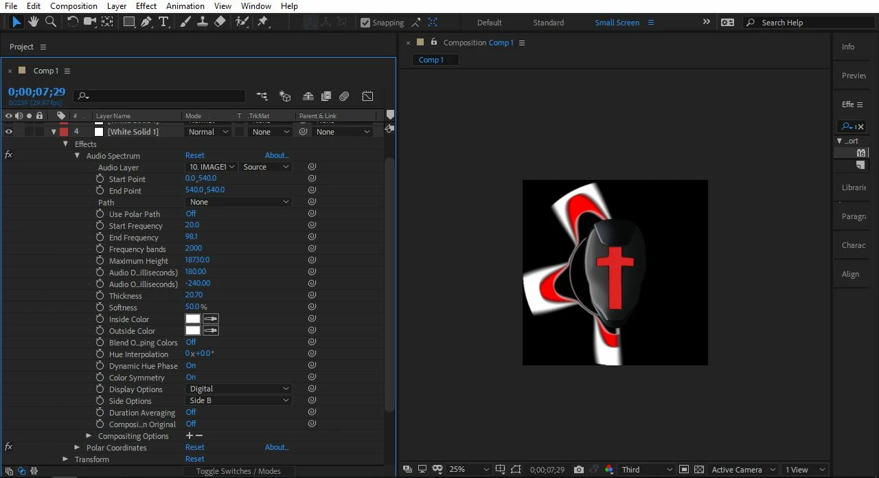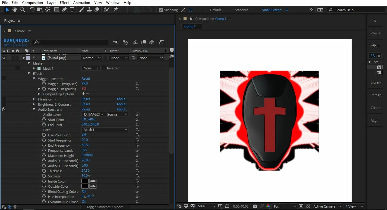 I have a tripled layered audio spectrum, but it it only showing sort of inside a circle. I don't have any masks or anything on the image. I added three images to show one of the audio spectrums and how I it set up. Also, if I increase the max