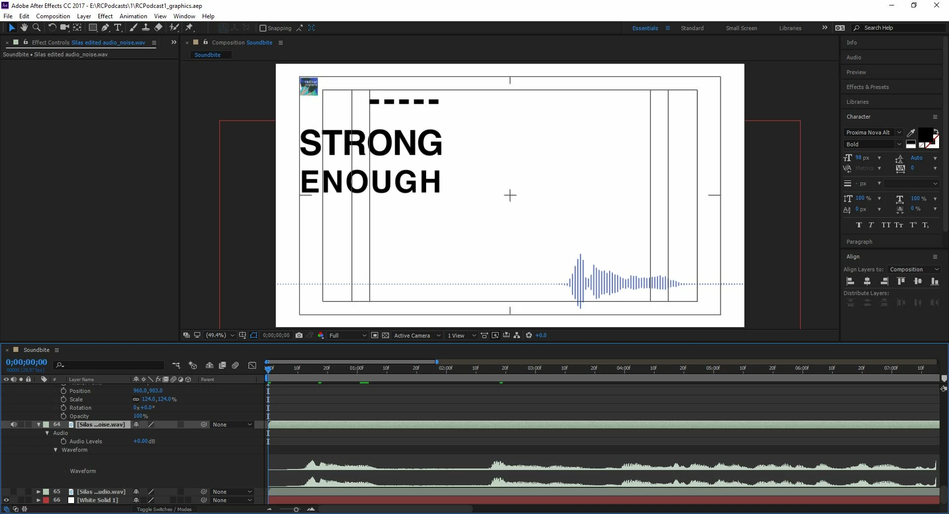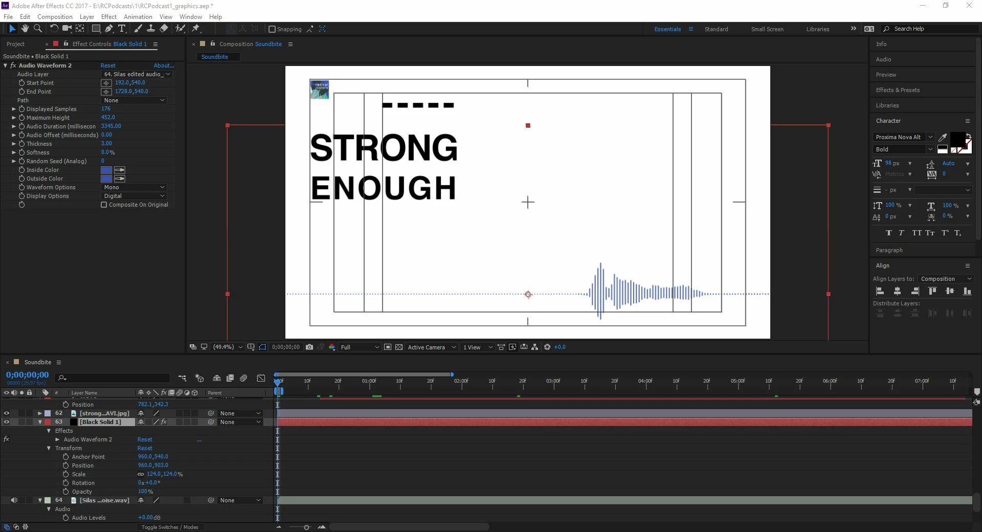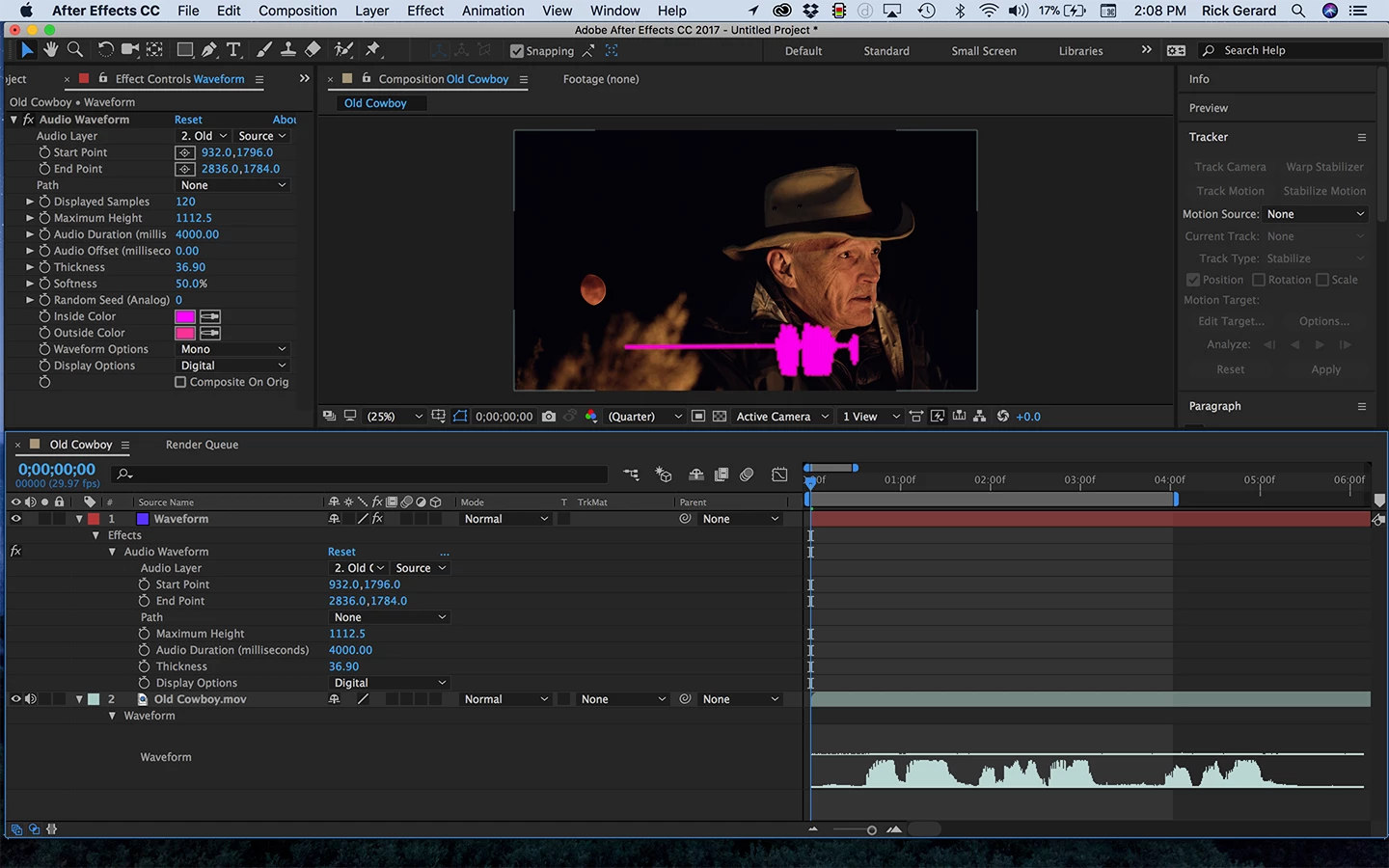 As you can see in the timeline I modified the start and end point, maximum height, audio duration, thickness and display options. My screenshot shows the same problem that you are seeing, no audio at the current time but a waveform generated. The clue is audio duration. It is set to 4000 milliseconds which is 4 seconds. Note that the rendered audio waveform looks just like the first 4 seconds of my audio track. Your audio duration is set to 3345 which is a little more than 3 seconds and your waveform looks like it is a pretty good representation of the first 3 seconds of your audio track. If you first screenshot had shown the modified properties of your layer the solution would have jumped right out at anyone that understands how Audio Waveform works.