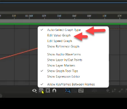 There are 2 types of graphs available in After Effects - Value Graph and Speed Graph. As the name suggests, the option Auto-Select Graph Type automatically selects the appropriate graph type for a property. The other option is to switch to the Value Graph manually.