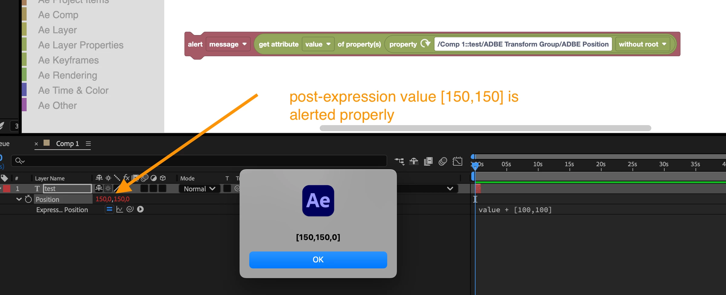 I'm trying to get a value from the Position property that have an expression which is modifing the original value to a new one, but whenever I use the Get Attribute type "Value" block, it gets the raw value instead the new one with the expression.