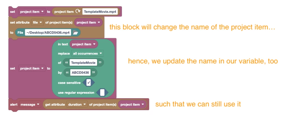 So I've followed along with the tutorials and set a script to replace footage in a template. My question is this, now that the footage has a new name, how do I identify it to get an attribute like duration via script since I won't know it when the script is written?