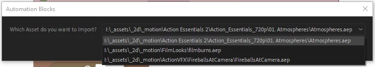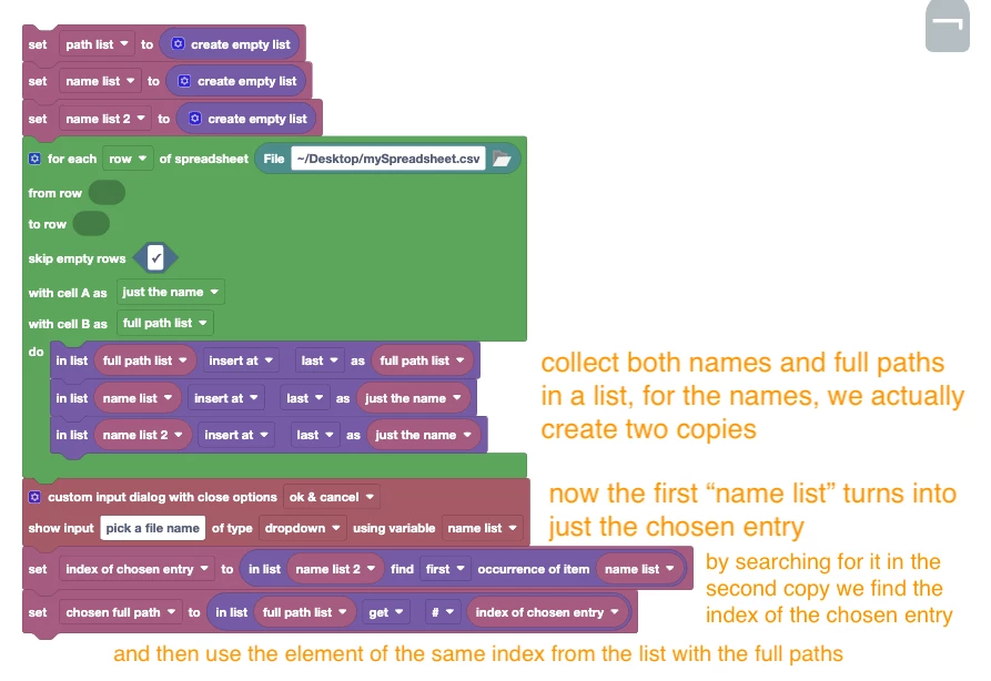 I'm trying to import a file listed in a spreadsheet and can not figure out how to use a column with a simple name in a drop down and then use a different column with the path when executing an import.