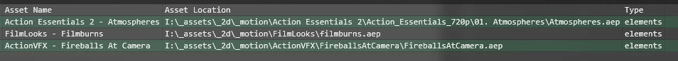 I've got a simple spreadsheet to list my asset name, the location, and what type.