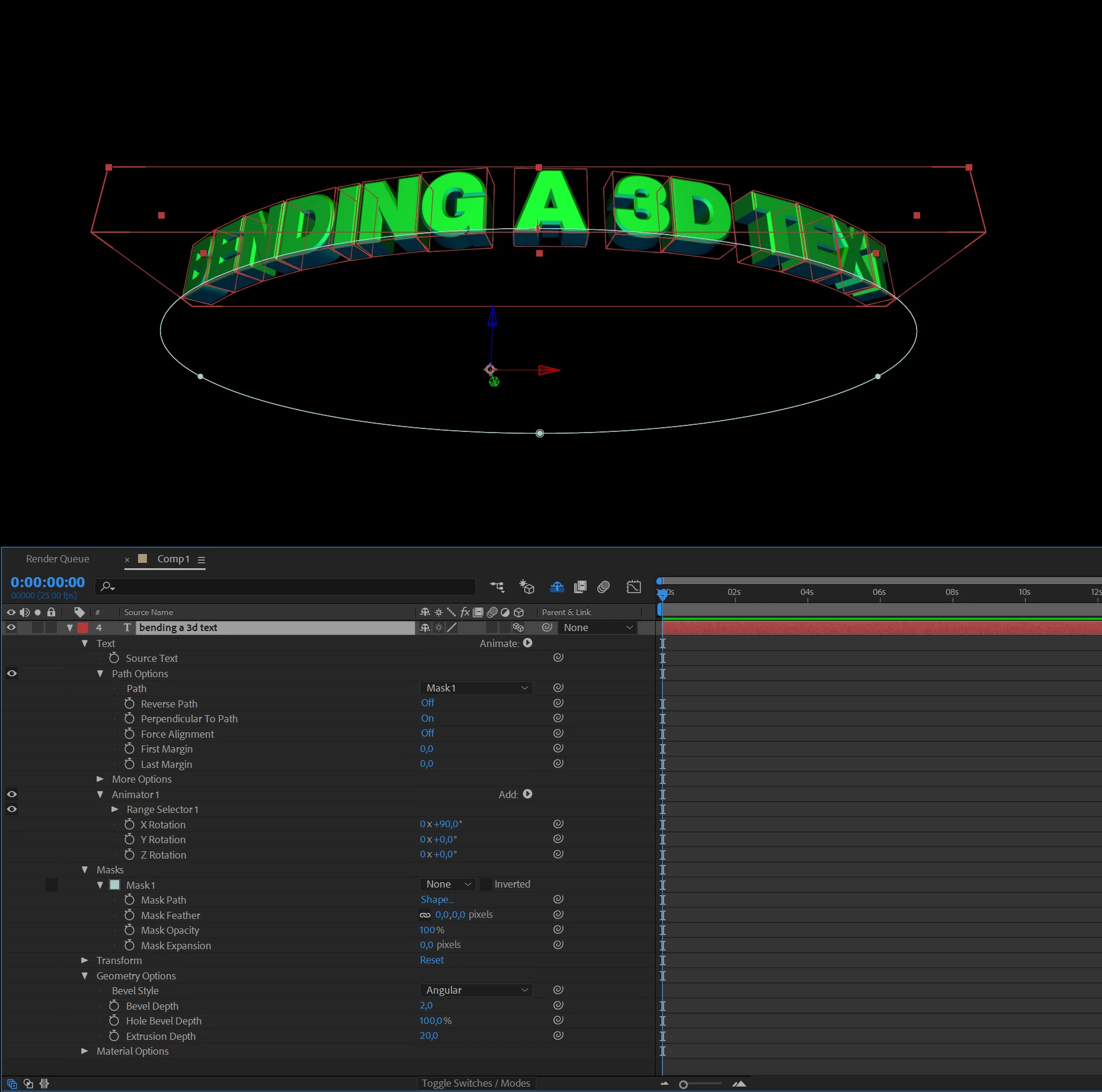How do you arch a 3d extruded text in after effect. I rather not do it manual as like to have an perfect arch. I also have element 3d but wich can do this. But im happy with the text I got already. This must be easy. I have enabeled per character animation in the animate drop down menu.