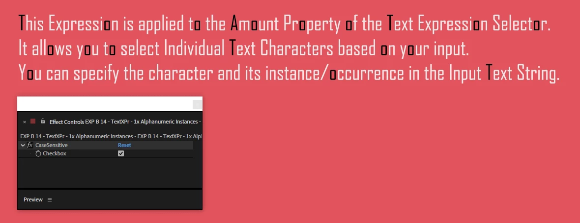 - select specific character/letter [with case-sensitive checkbox & instancing feature (tell the Expression which occurrence/instance of the letter you want to select)]