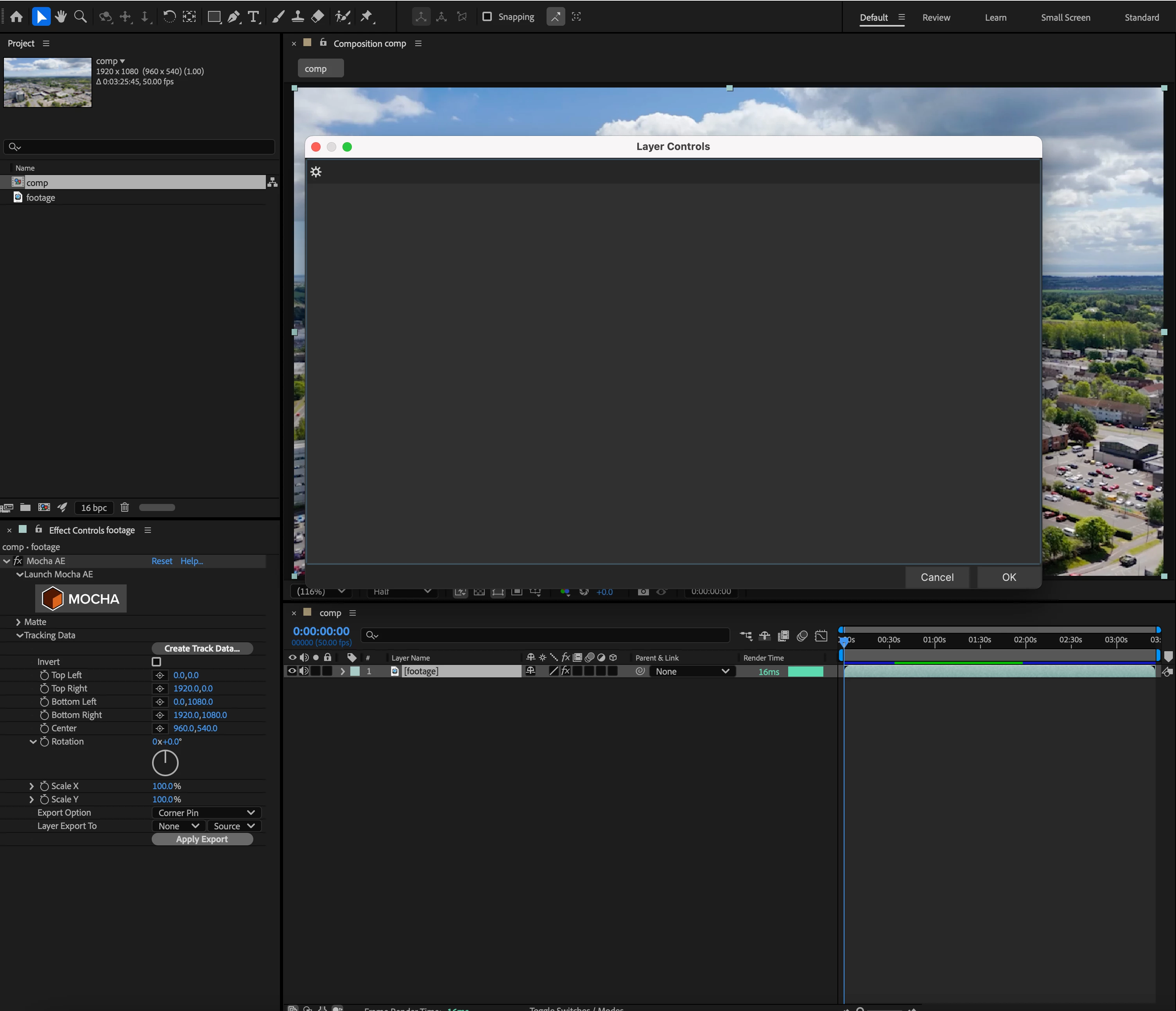 I've ensured that the comp's timecode is 0:00, and that the footage matches the comp.