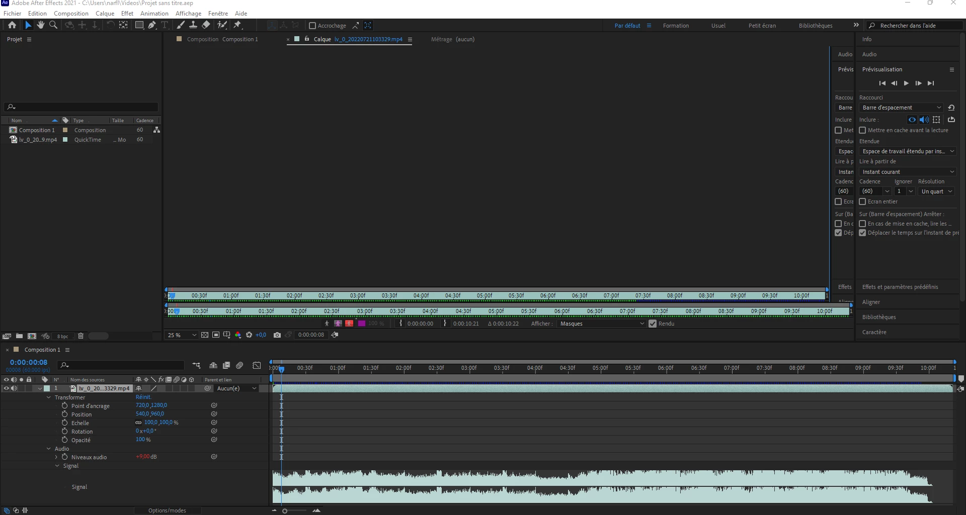 Bonjour a tous je débute after effect et je n'ai pas pu commencer au montage car j'ai un bug qui consiste à lorsque je crée ma composition je n'appercoit pas le fond noir qui était censé apparaitre et lorsque j'importe mon fichier et que je lance en appuyant sur la barre espace je n'est pas l'image mais j'ai le son