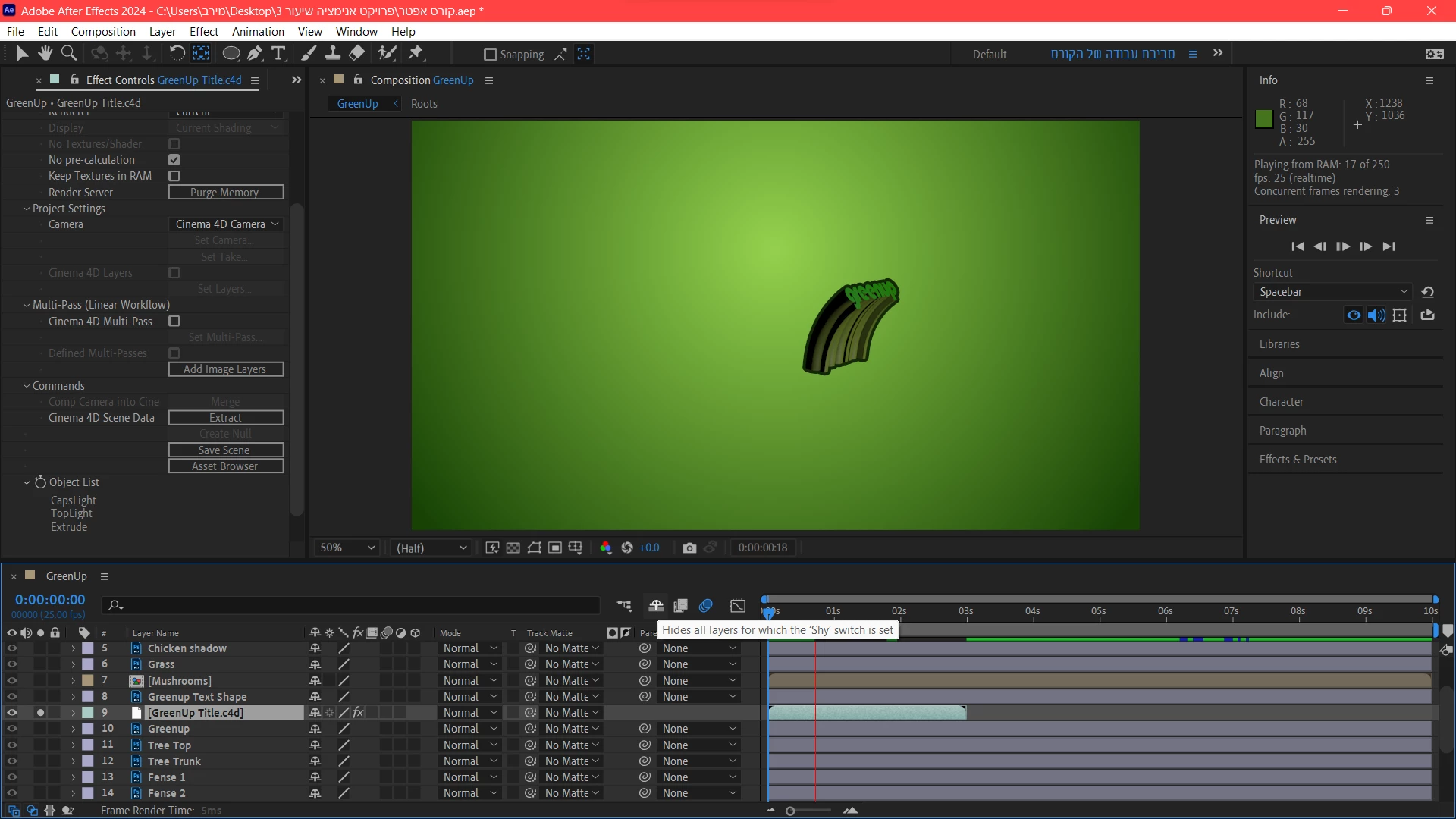 When switching back to After Effects the object view changed its angle without me putting anything down.