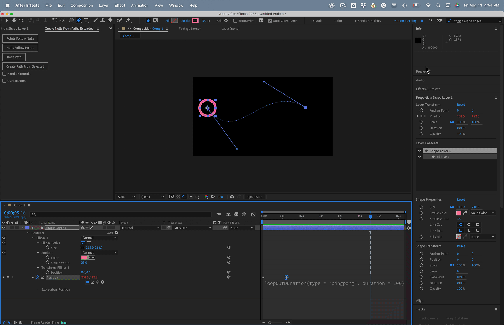 I tried playing with the Spatial Interpolation, but I never got the desired result. I did, however, get the wanted result by copying/pasting/reversing the keyframes, but this method seems a bit long.