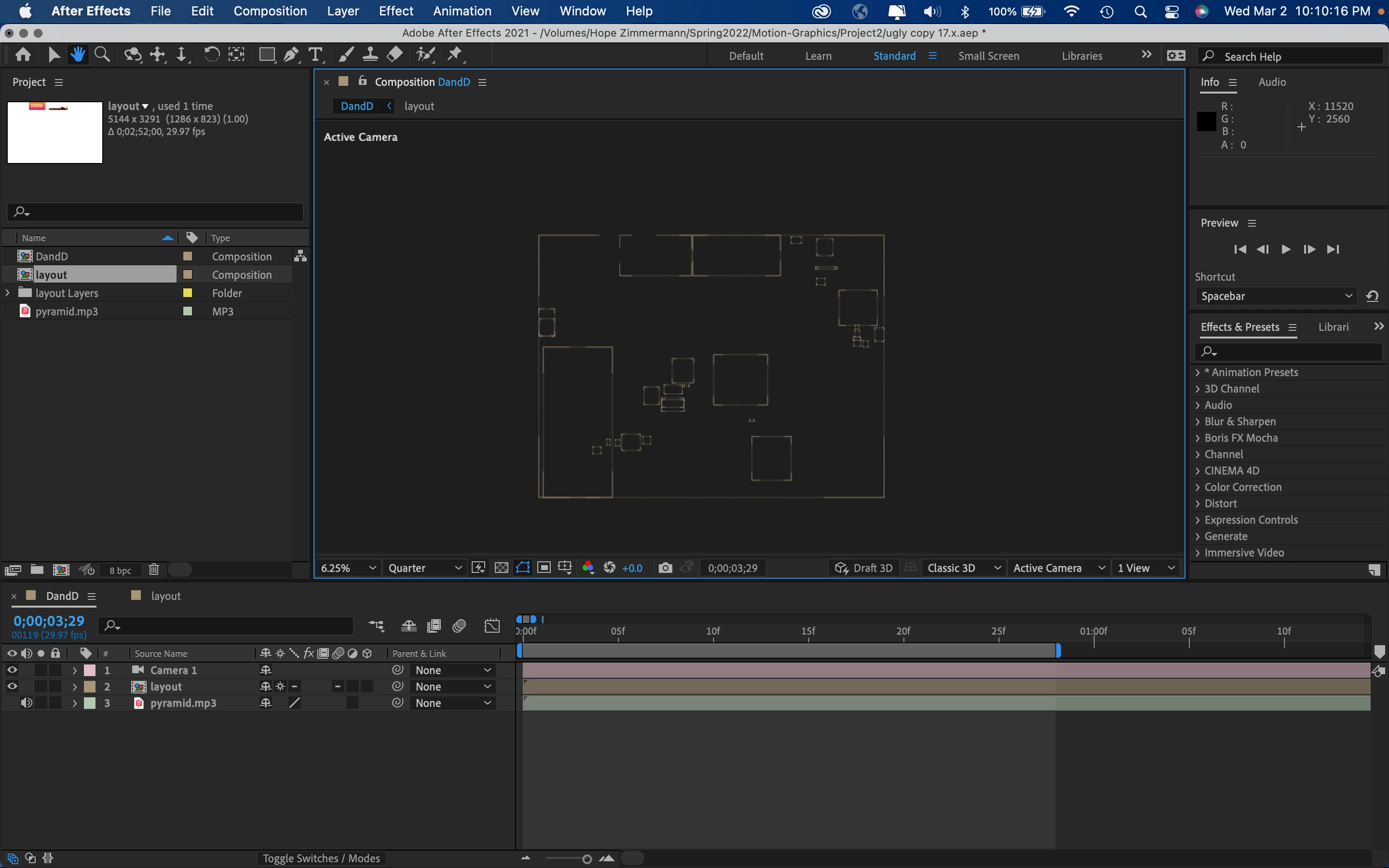 - File>Dependencies>Collect Files of the composition I believed to not have a problem and tried importing my audio and camera back in and still didn't work