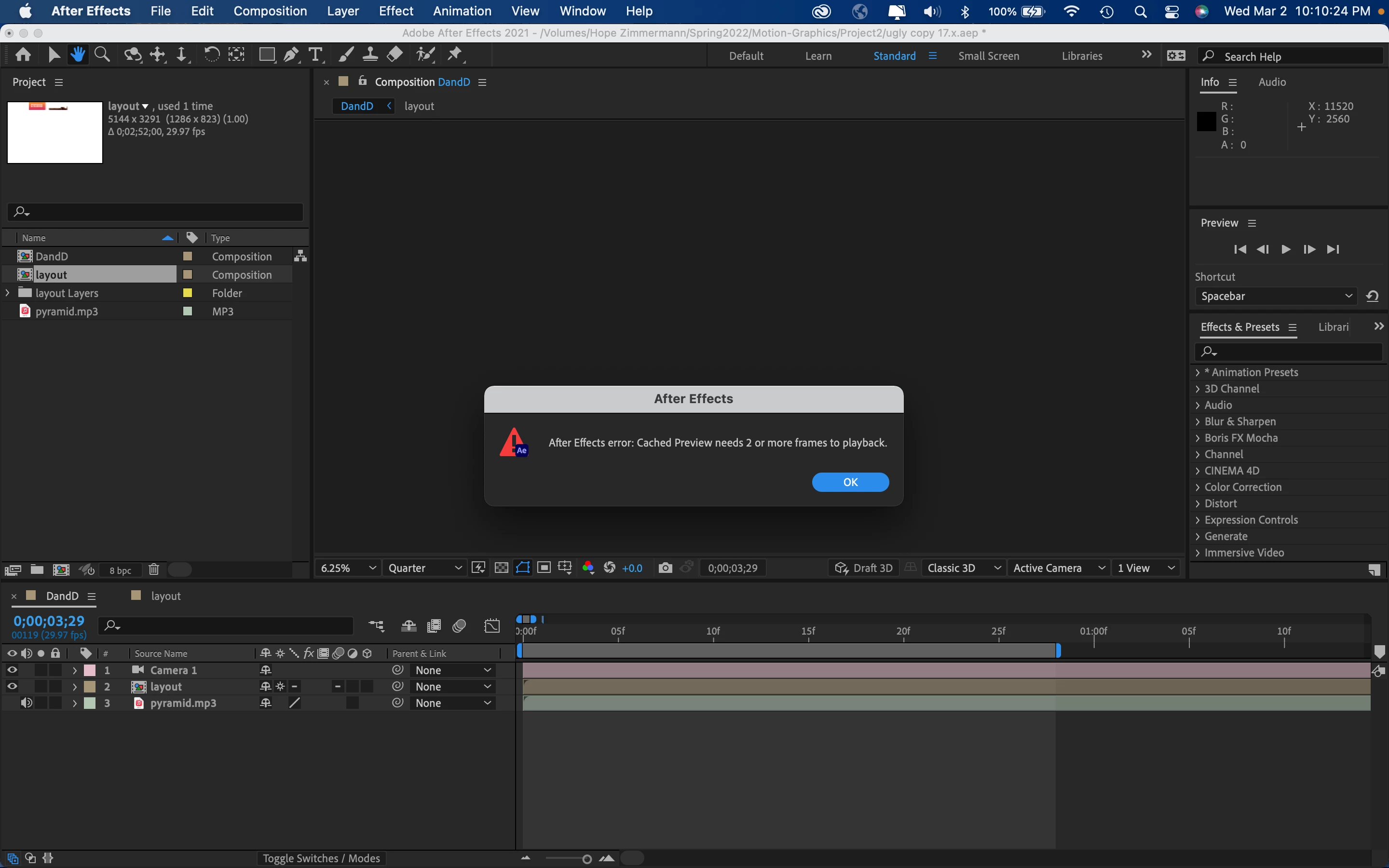 I have even sent my file to my professor and she was unable to open it on her personal and school laptops. I have tried getting the file to work on two different iMacs on campus as well and still have the same issue. (most recently I tried getting it to work on a 2019 iMac running Big Sur, and it still gives me the error)