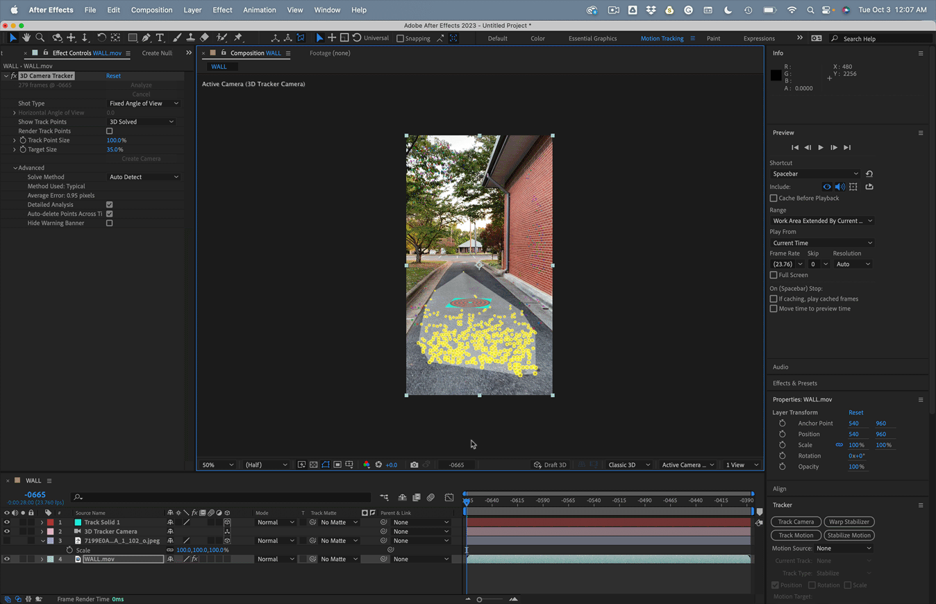 For the context, I shot the video with my iphone 11 pro, wanting to track the wall in order to attach a photo on it later.