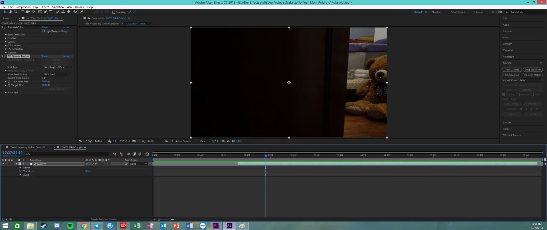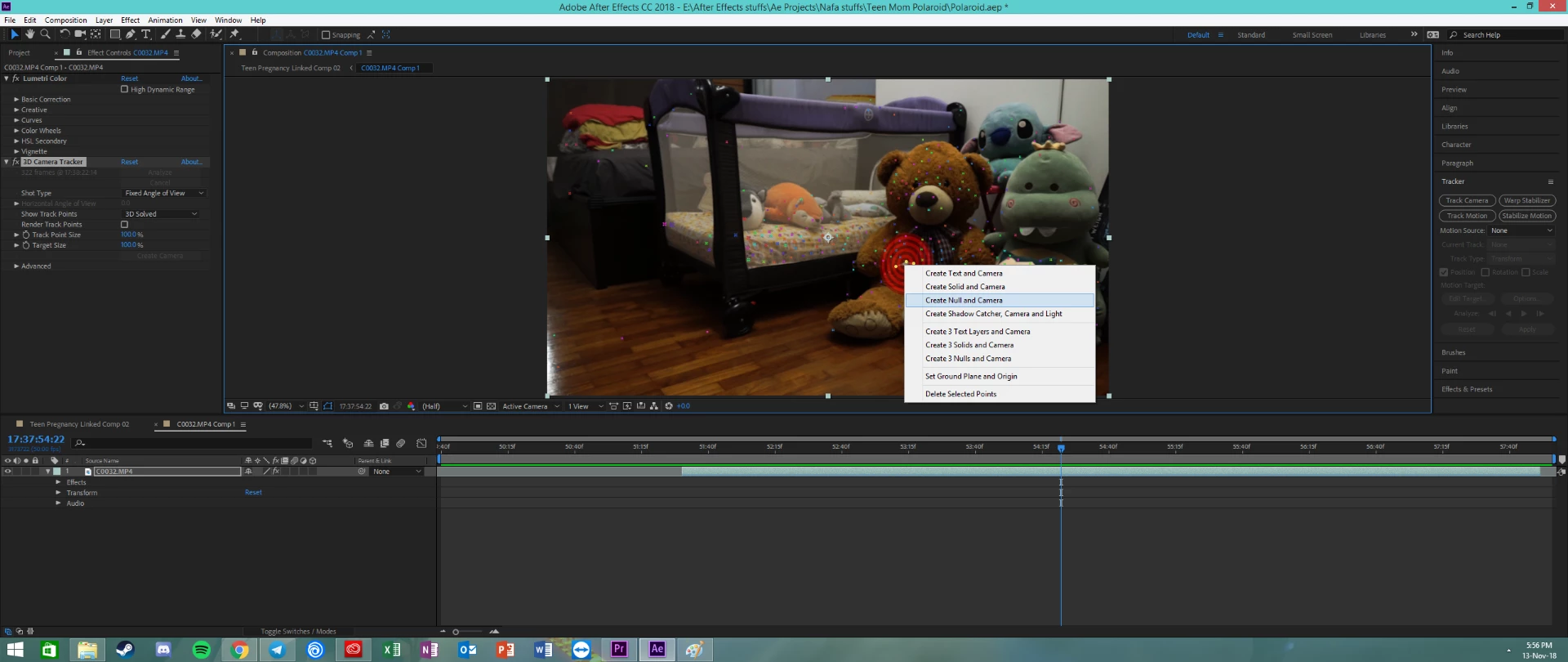 5) Clicked on Null layer in the timeline and realised that the null was not tracking but stationary throughout the clip.