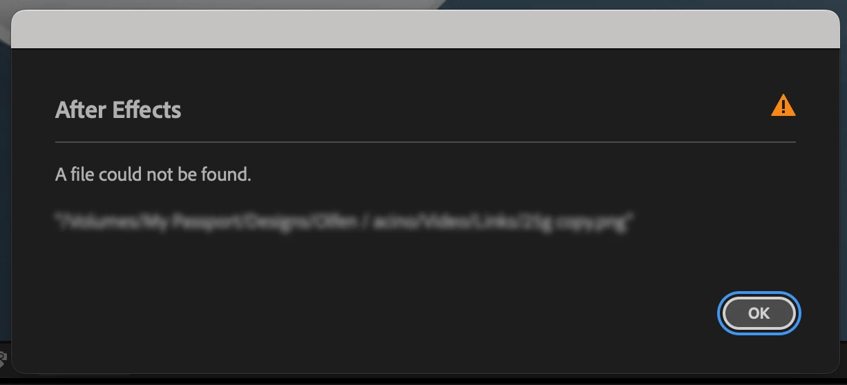 Am trying to import PNG files to after effect but i get the massage "A file could not be found."