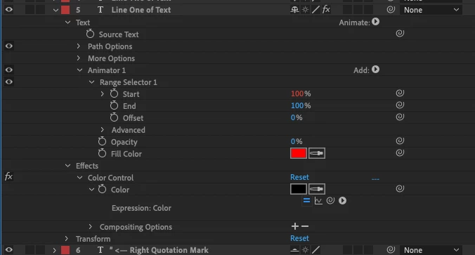 But in order to set the text colour (with an expression I might add not using the AE User Interface) I need the Opacity up higher.