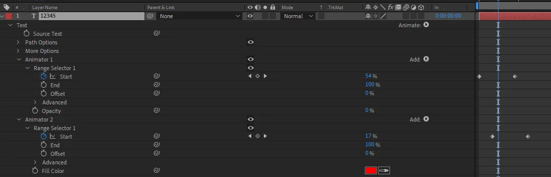 Can't change/animate the colour of my text objects (I need Opacity set to 0% for the Range Selector animation to work)