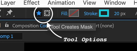 This information is pretty hidden in the user guide but it is in there. Hovering over the icons with tooltips turned on will give you the info you need. There are several tutorials on masking and shape layers accessible directly from AE's Search Help field in the top right corner of the app.