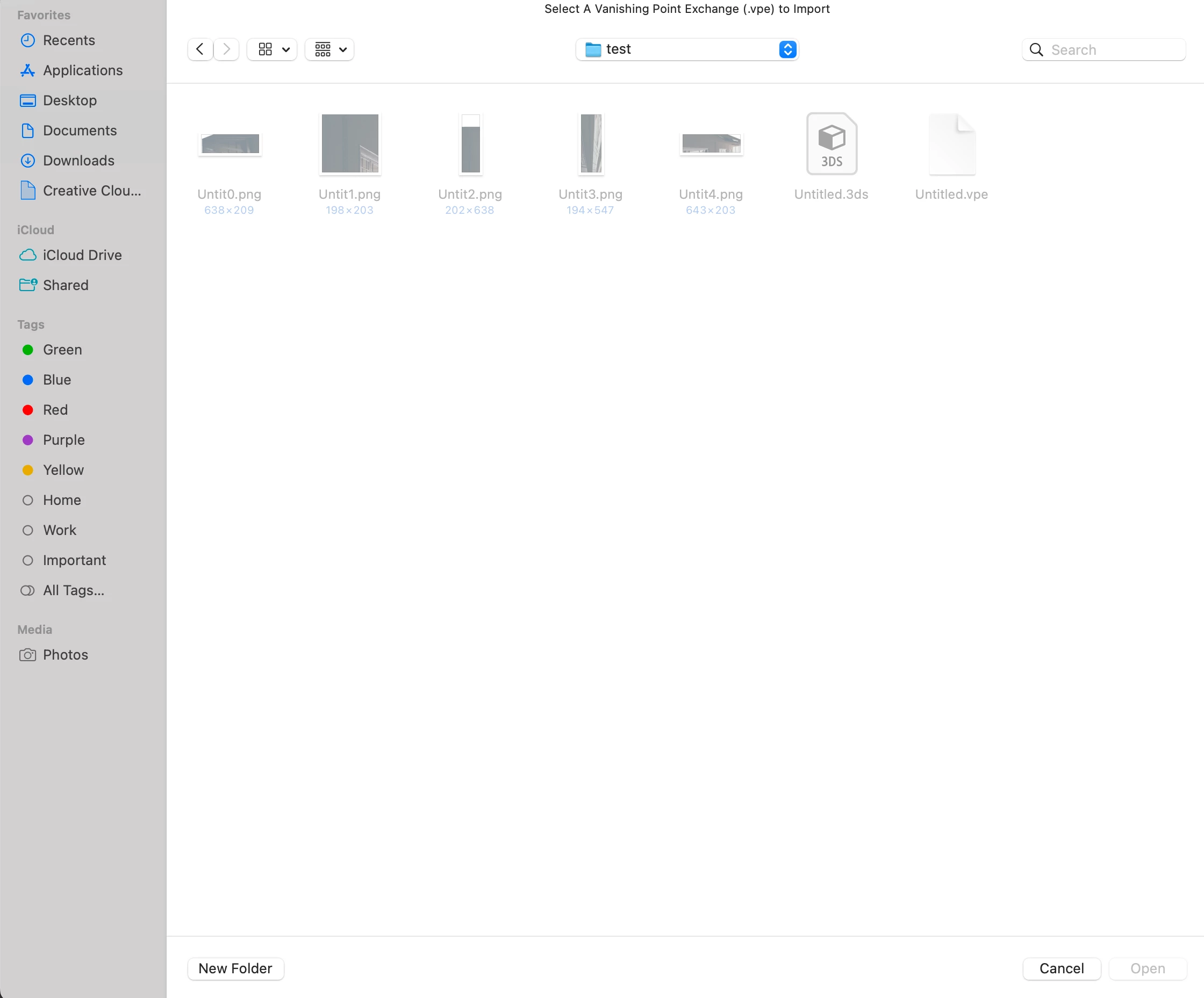 I go to file>import>vanishing point