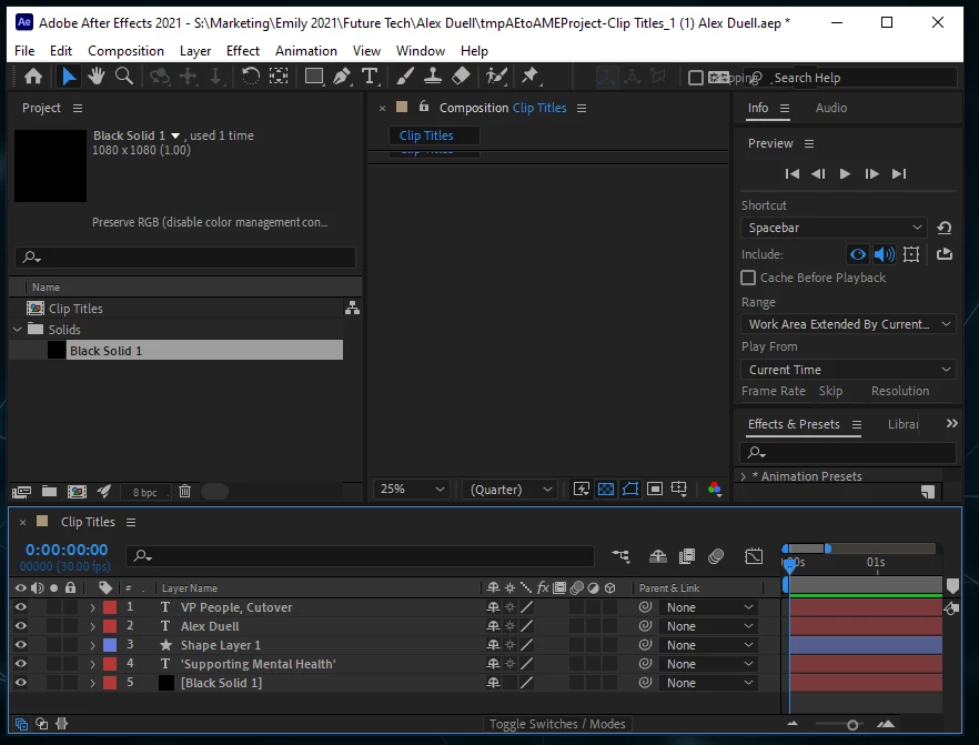 Can't preview composition