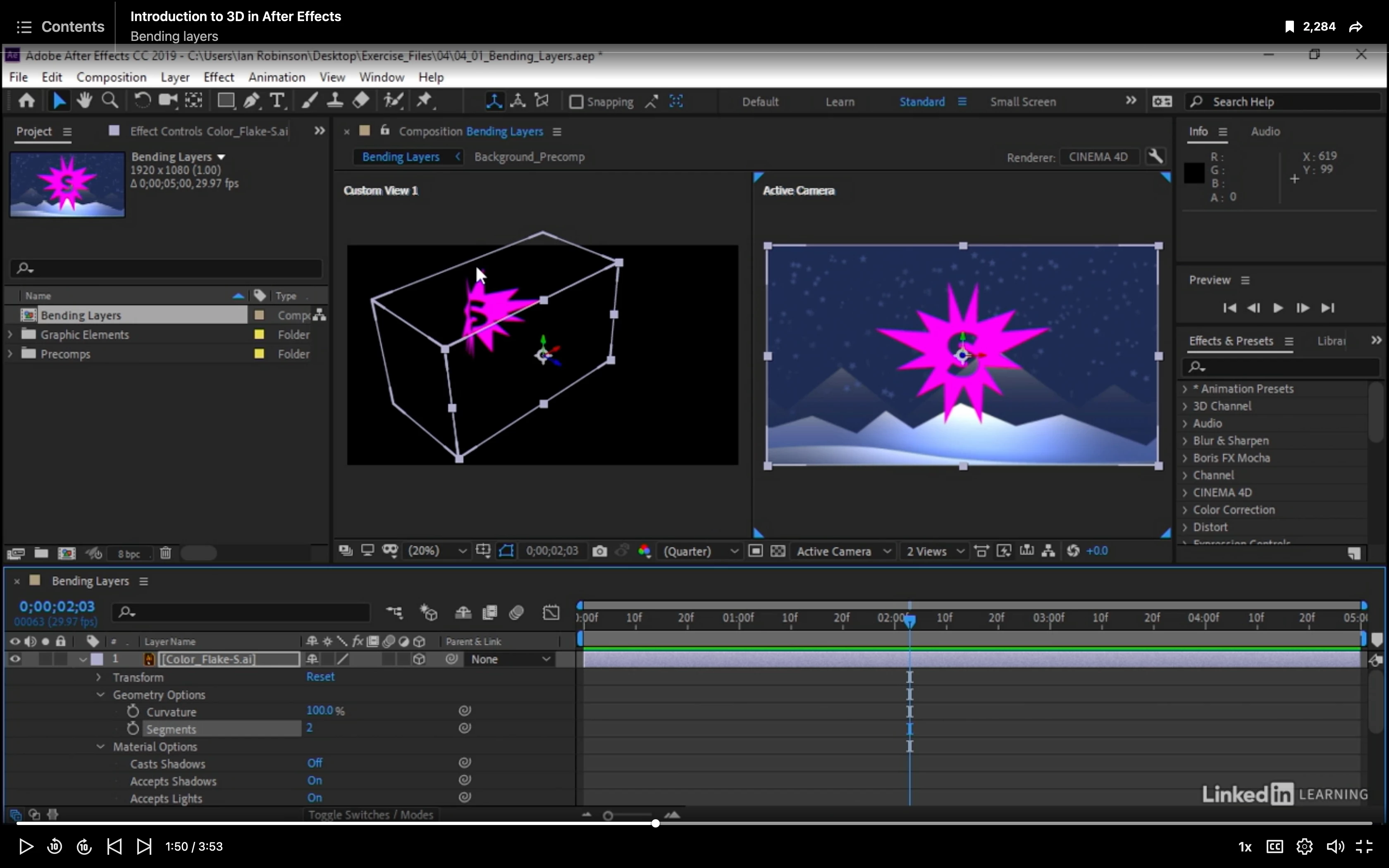 I'm following along with a tutorial on LinkedIn Learning on how to bend layers, and it tells me to bring up the horizontal viewport to show the bounding box. But I do I can't see the the bounding box of the composition, which makes it hard to know what I'm doing.