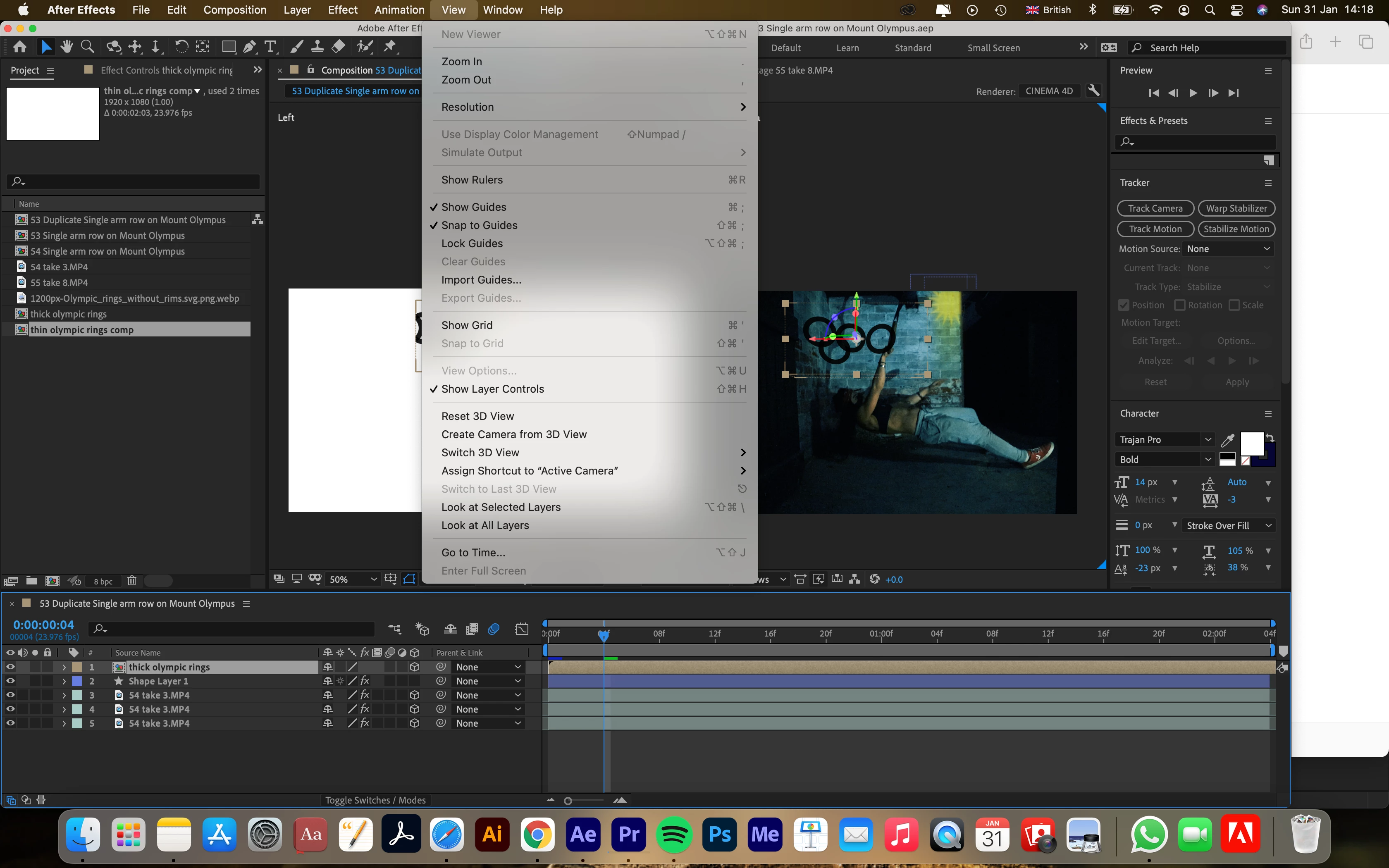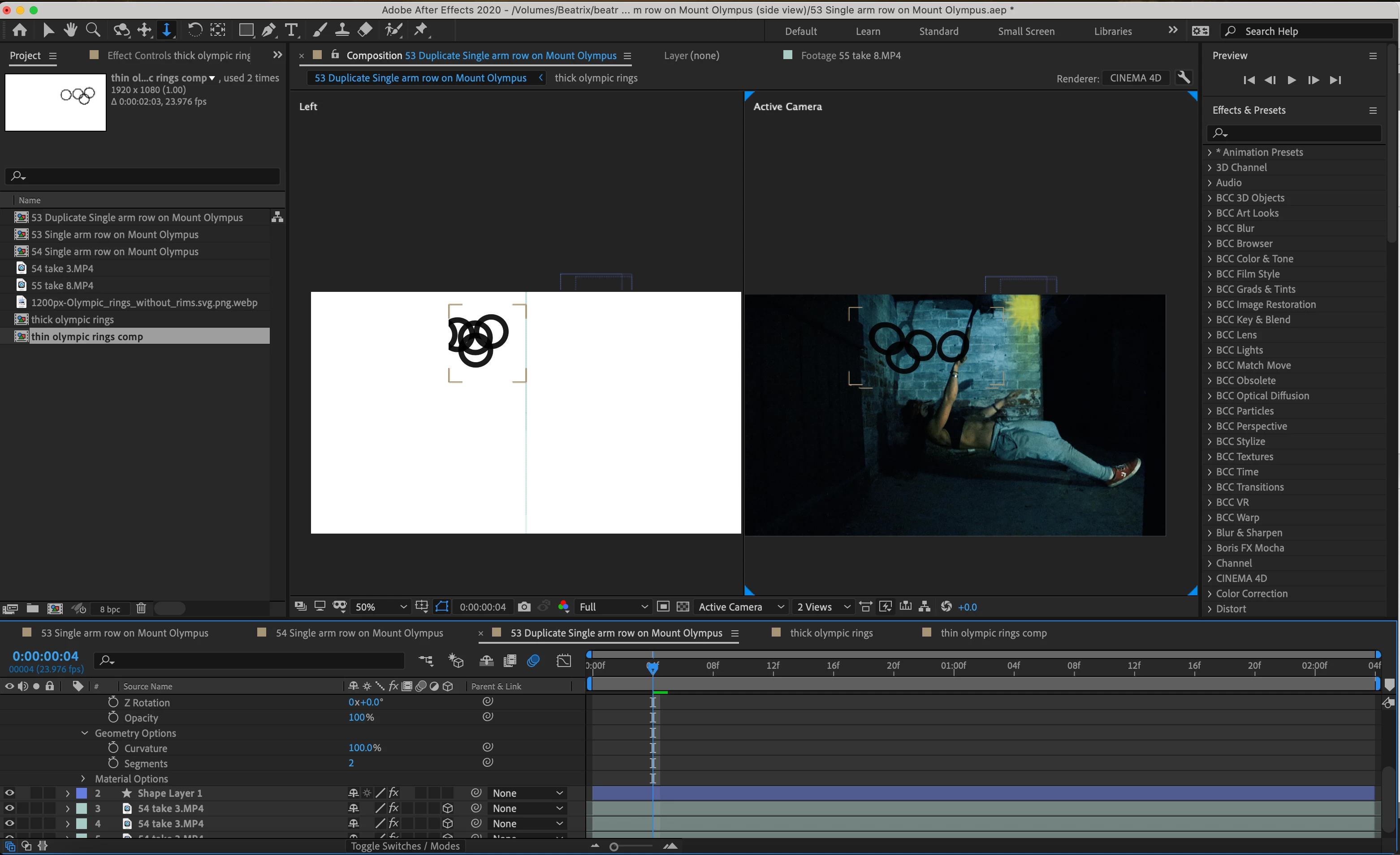 I'm using the Cinema 4D Renderer so I can make this Olympic rings composition bend, so that it looks like a natural shadow on the wall.