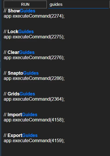 app.project.activeItem.addGuide(1, 500);And these commands can be useful: