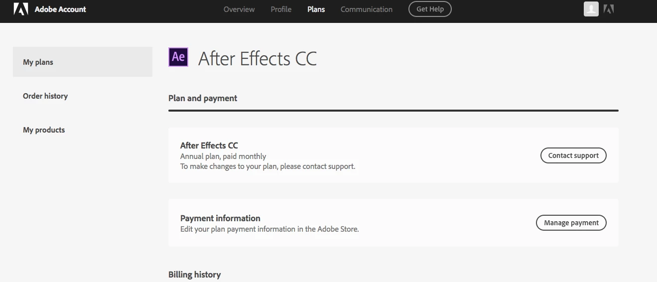 I want to cancel my subscription to After Effects CC but there is no option to cancel the plan.