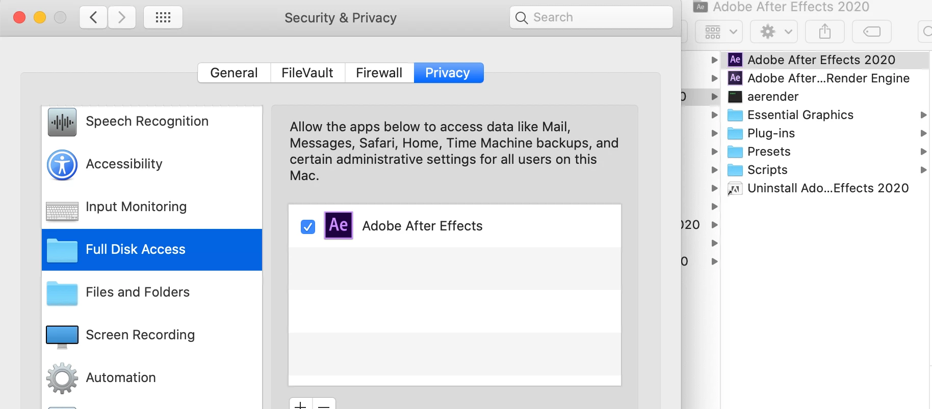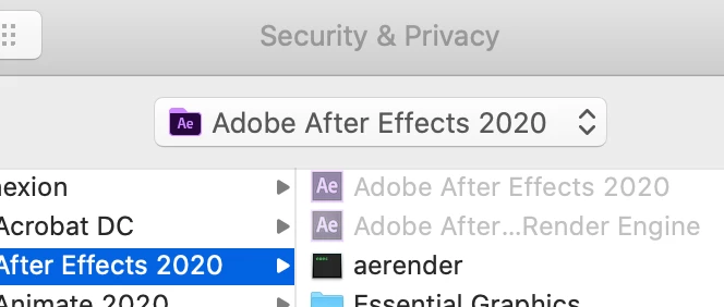 Cannot change media cache directory for AfterEffects or Premiere, using macOS 10.15.3