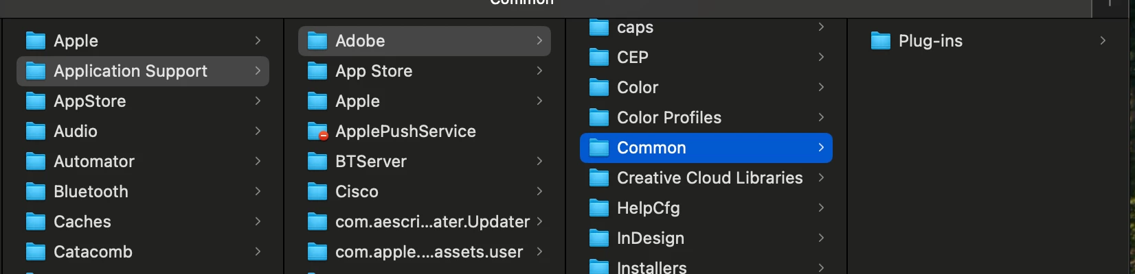 But now when I go into ~Library/Application Support/Adobe/Common the only folder I see is 'Plug-ins'?