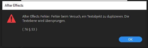 After Effects Error: An attempt to duplicate a text object failed. The text layer is skipped. (76 § 53)
