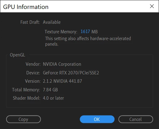 Nothing to fix because essentially nothing is wrong. RTX cards use CUDA 6/ 7, the last version AE supported was CUDA 4.5 or something like that. Raytrace 3D will never work with this new stuff. It's a completely different architecture. Everything else seems to be A-okay, at least where OpenGL-based acceleration is concerned. And if you don't mind: It's not that terribly useful to just post info from within AE when we don't know the least bit about your system. Even if all that stuff worked in theory you could still exhaust all graphics hardware resources e.g. with an unusual screen setup or some concurrently running stuff. Your issue with the 970 never even working seems to point at some such thing going on, as otherwise it should have fulfilled the criteria.