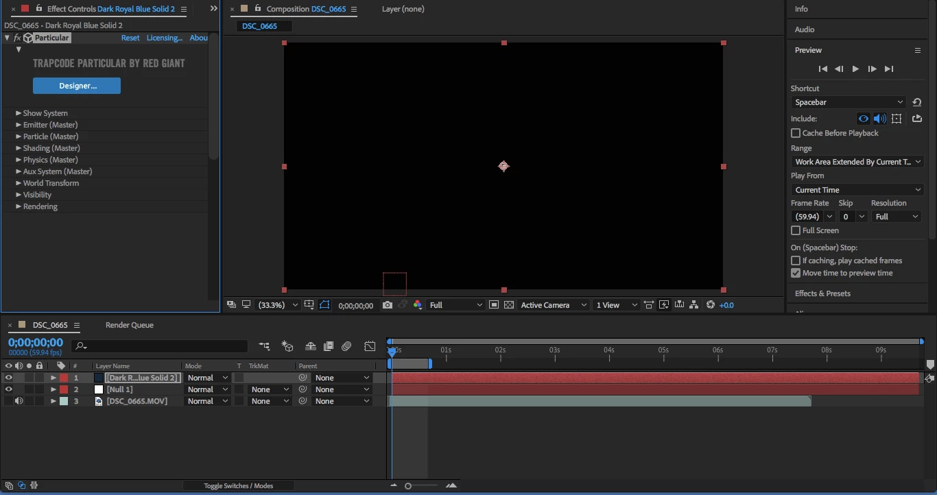 this is probably a noob question put trapcode particular particles aren't showing on my project.