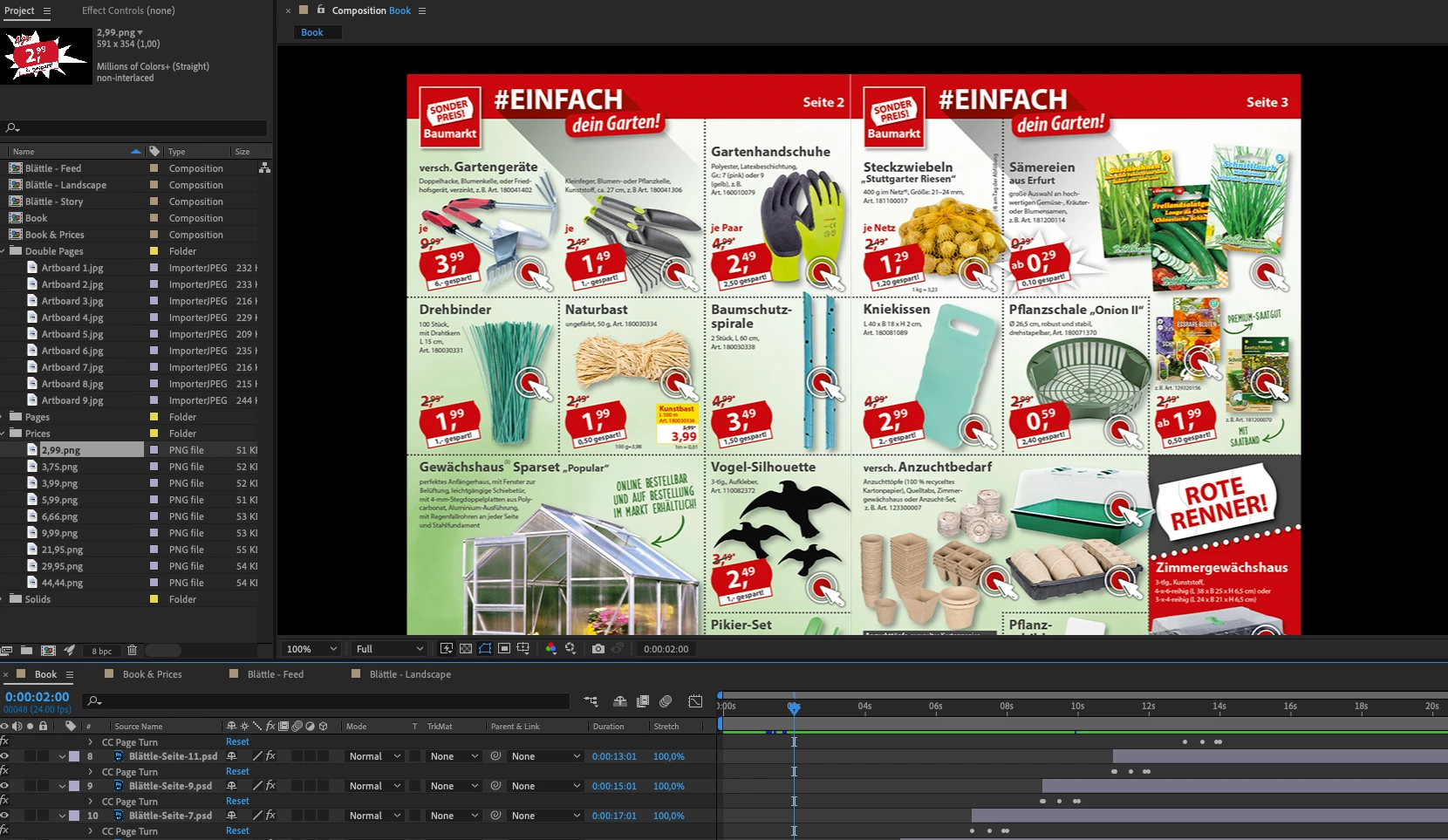 I created an image in PS with the same 2 pages side by side and with the same dimensions like the ones used in AE and placed it on top in the AE... it clearly shows that the "back page" shrinked... and I don't know why.