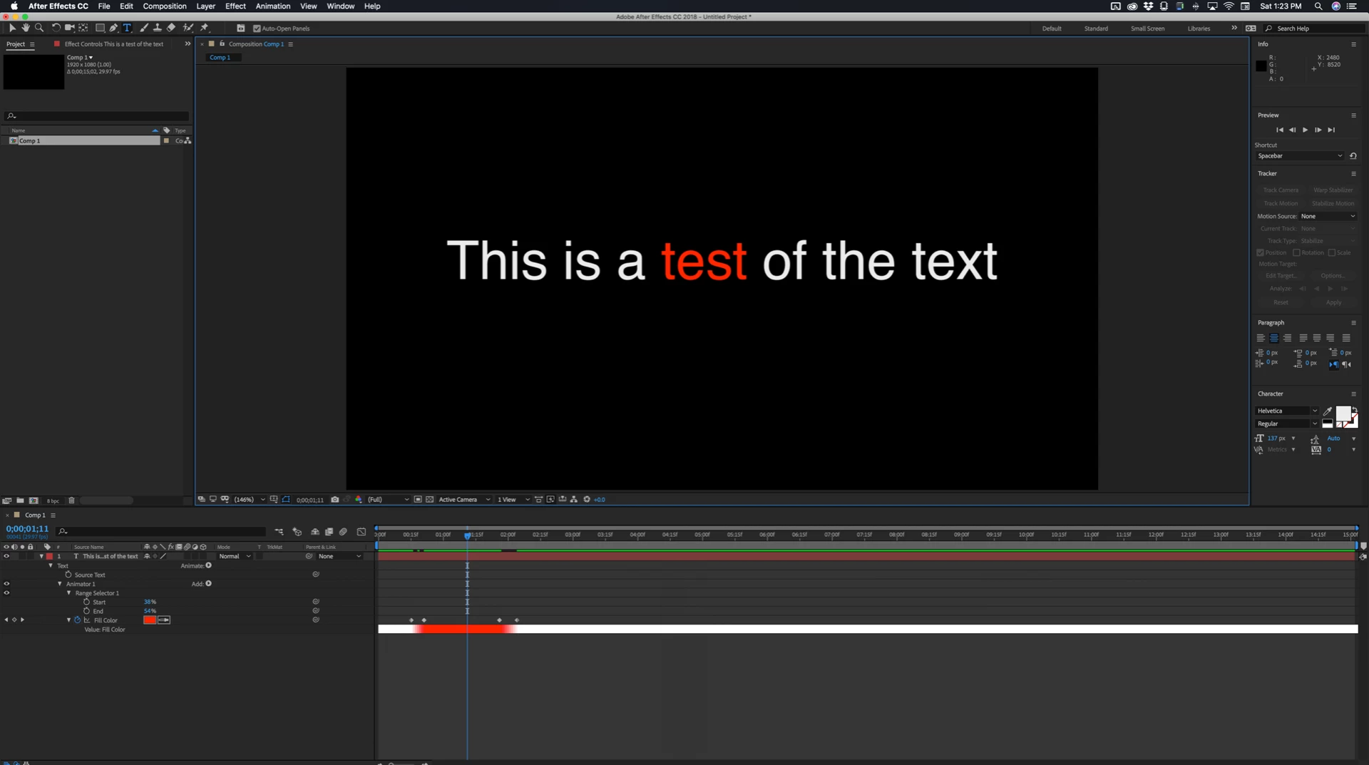 I have a sentence in After Effects CC that I've applied the 'Typewriter' effect to: 'It helps victims and their children to talk, to break the cycle of abuse, and to build a future without fear.'