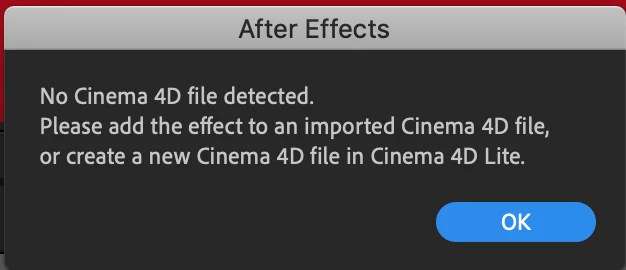 Hi guys, has anyone had any issues using C4D Lite on Ae? I'm getting an error when I open a new C4D file in Ae (File - New - Maxon Cinema 4D File). Screenshots attached.