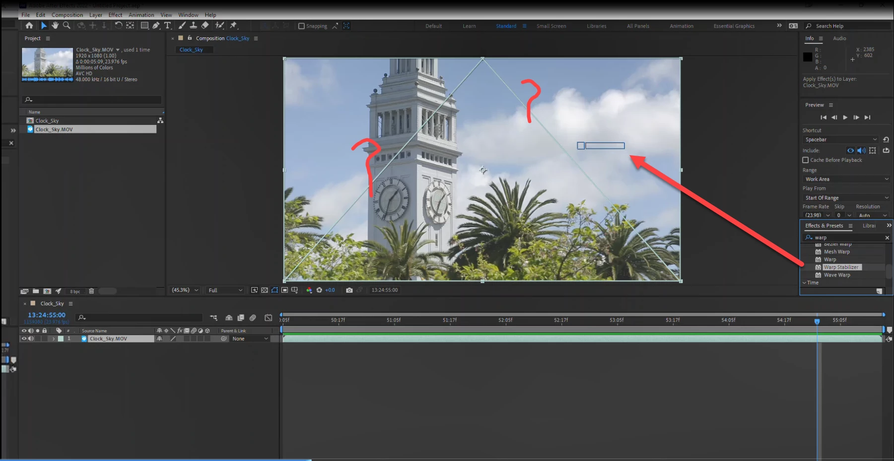 Clip in composition panel