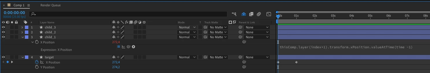 i want to make a really simple clone of a xPosition animation from one layer (Layer A) to another layer (Layer B). Layer B sits somewhere in the timeline, layer A starts at the beginning and has to keyframes starting at 0. I need to clone layer B several times, so it would be handy to change the keframes and timing in layer A and all layers are synced.