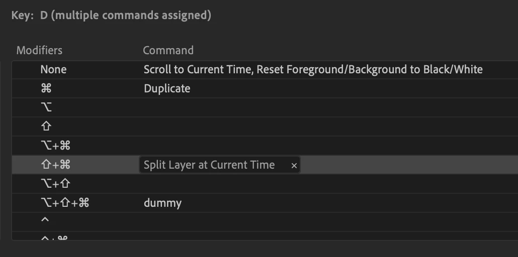 I can't duplicate+split layers with the CMD+SHIFT+D shortcut and it's slowing down my workflow massively.