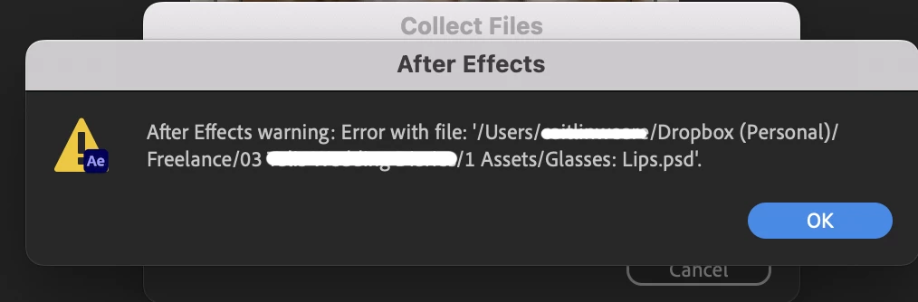 When collecting, it's linking an error back to a PSD file. The PSD file shows up in my project perfectly, it's not broken or missing. I've re-saved it with a different name and re-linked it, but it still gives me this error when trying to collect and stops the collection.