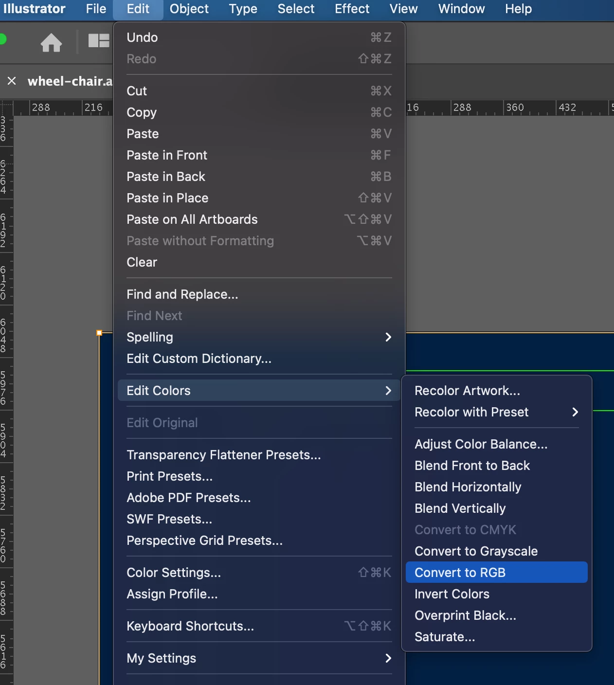 Illustraor/File/DocumentColorMode was already set to RGB.
