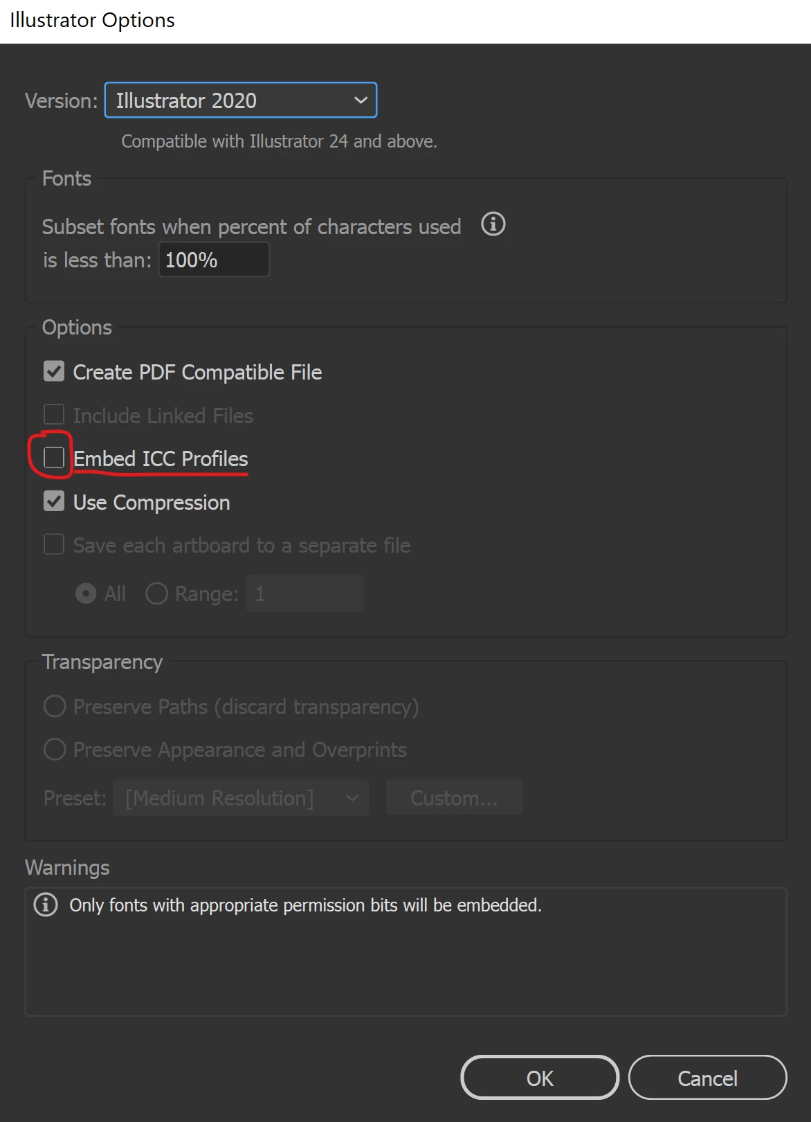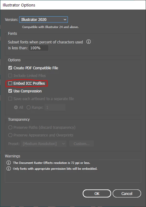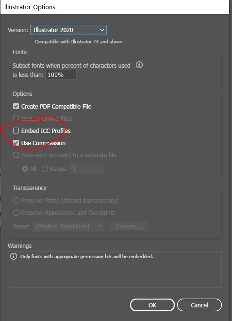 It worked for me when I unchecked "Embed ICC Profiles" when saving the AI file.