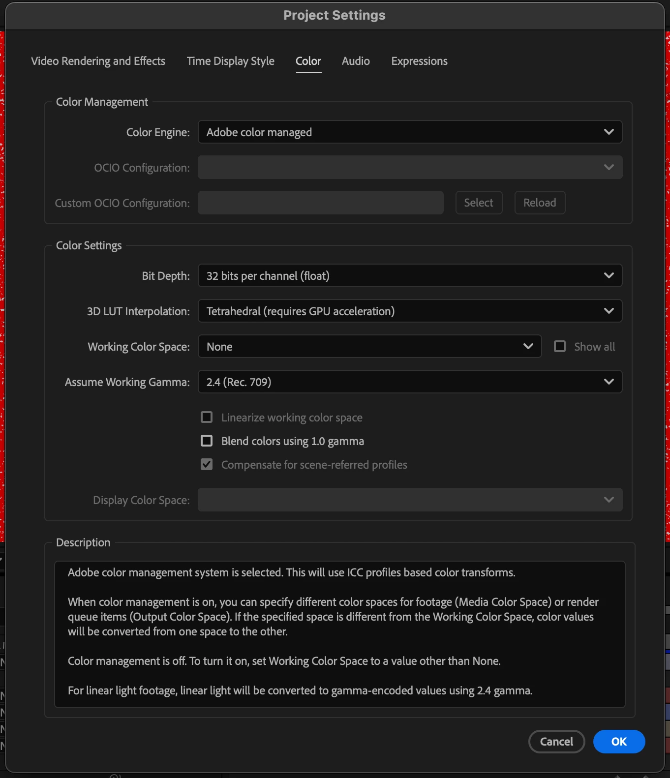 Hi all, working on a red reveal style video (red lens glasses reveal cyan objects) and as you can see in the image, the effect works in After Effects (top) but on export (bottom) the pure red has been desaturated which is making the reveal not function properly. Don't know a ton about color spaces or color management so would really appreciate any ideas!