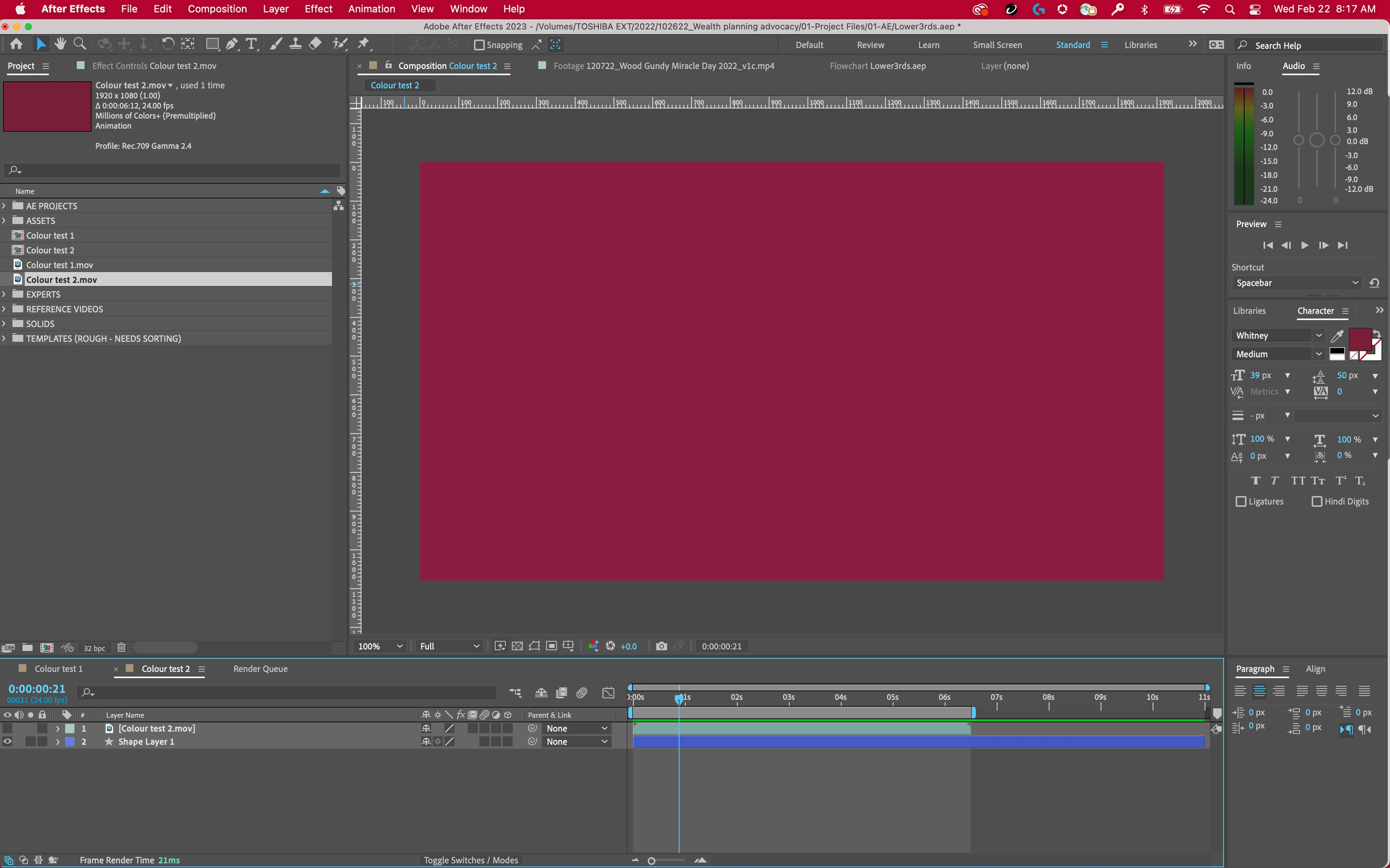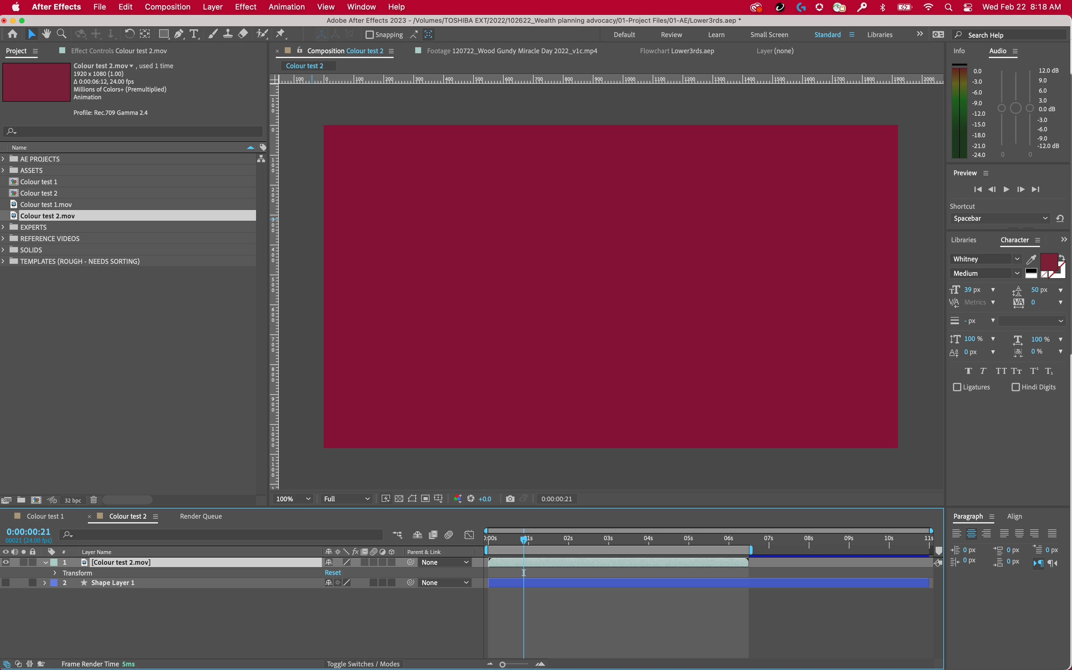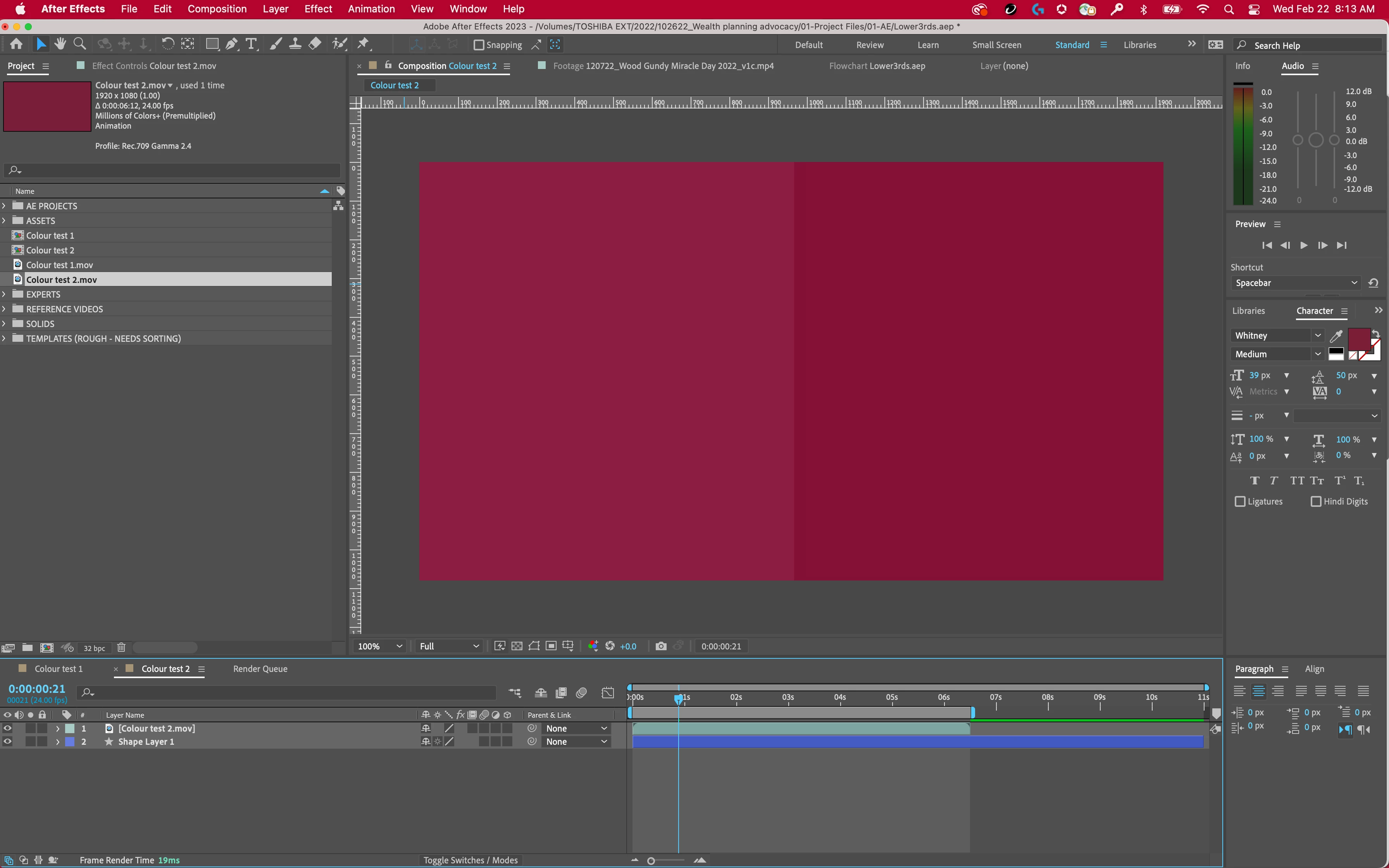 - Second image is an export of "Comp 1" imported back into AE. Colour has changed.