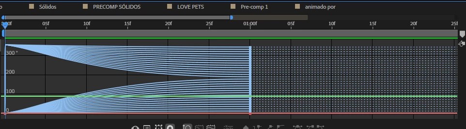 Hoje me deparei com a seguinte situação. Criei 30 shape layers em 3d para rotacionarem em sequência de 12 graus até completar 360 graus. No entanto, as keyframes que rotacionam mais de 180 graus estão seguindo o trajeto mais curto, ou seja, dos 360 até qualquer valor maior que 180. Como eu posso alterar esse comportamento para que todas as layers comecem em 0?