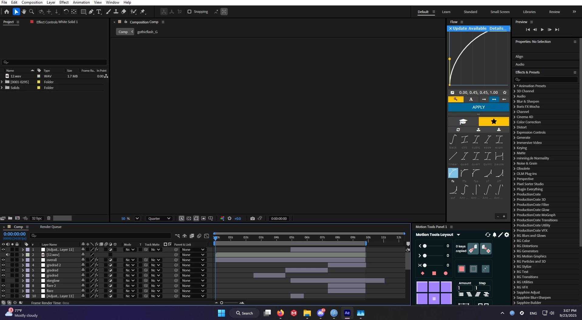 So, I was working on this project today and it was working fine. However, when I decided to close and re-open it the comp just completely vanished. Most of the time it's gray, but when I move the playhead it'll be black for a second.